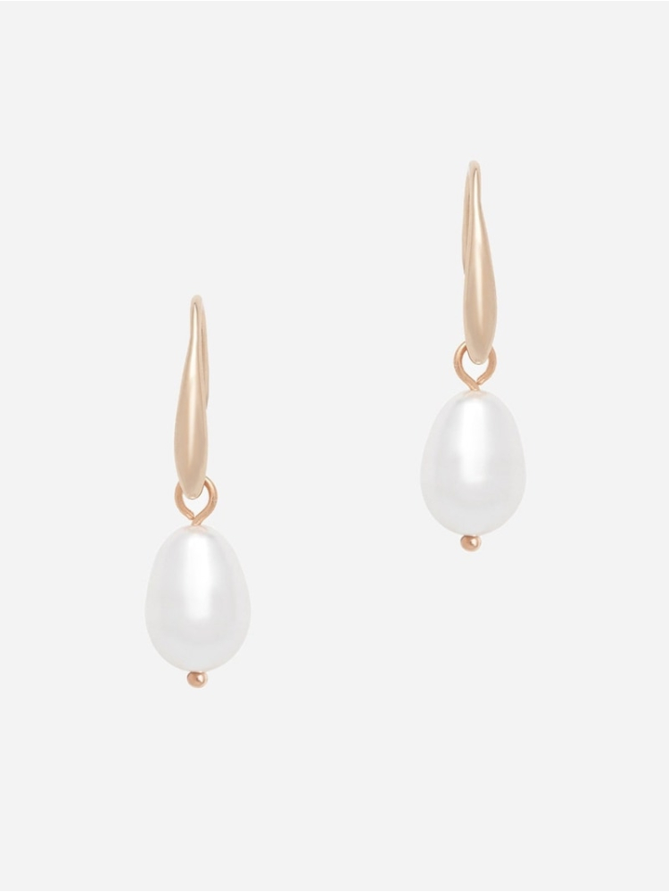 The Julie pearl earrings are refined yet striking jewels with a single drop-shaped Swarovski pearl. The Julie Earrings are made with a rose gold plating.