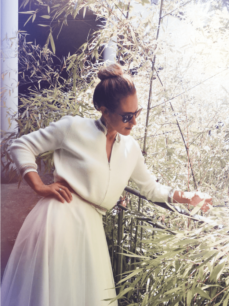 This beautiful bridal blouson in an extravagant design is perfect for your wedding day. The jacket in fine knit is made of soft quality, perfect for a winter or autumn wedding. The style of the blouson is emphasized by the knitted stripes of gold and silver lurex thread. You close the bridal jacket with a zipper at the front in a way you like it. The knitwear has a loose cut and has fine cuffs on the sleeves, hem and collar. This extraordinary design is very elegant and yet cheeky.