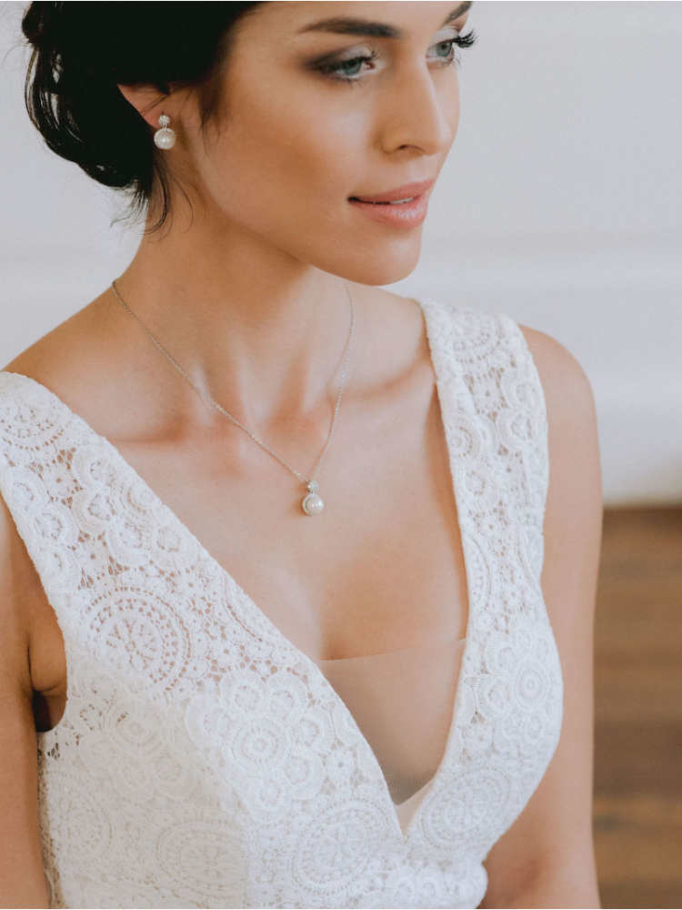 Are you looking for jewellery that will match both your bridal dress but will also fit together? Then take a look at our Jewellery sets! If you buy a jewellery set you save time by looking for matching jewellery and you are guaranteed that your jewellery will fit together. The DZ0147 Jewellery set consists of earrings and a necklace and is very elegant. Due to its simplicity this set will match any bridal dress!
