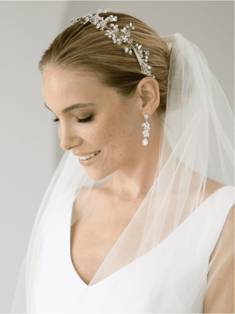 These lovely Silver earrings are composed of a stunning arrangement of sparkling Cubic Zirconia stones. The rhodium plated earrings will dazzle on your special day and give that finishing touch to your bridal outfit. The earrings have a length of 5 cm.