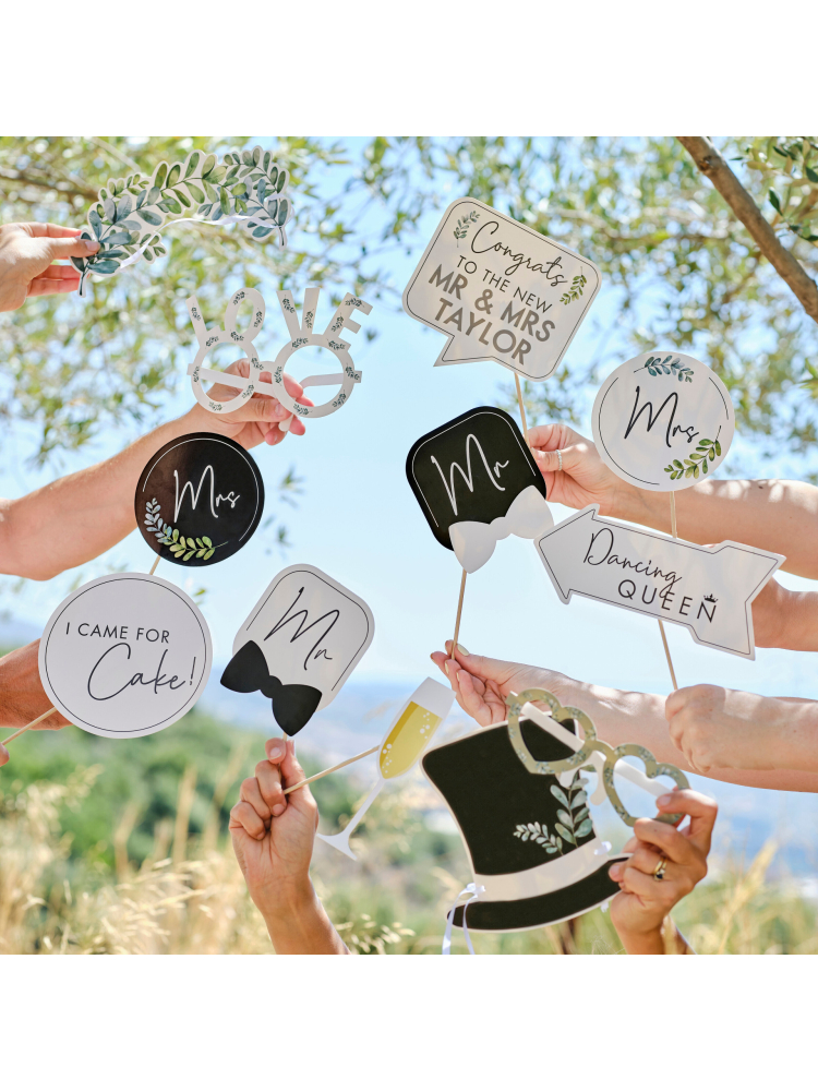 Eco-friendly and stylish photo booth props are the perfect props to get all your guests involved in creating special memories of your wedding day.