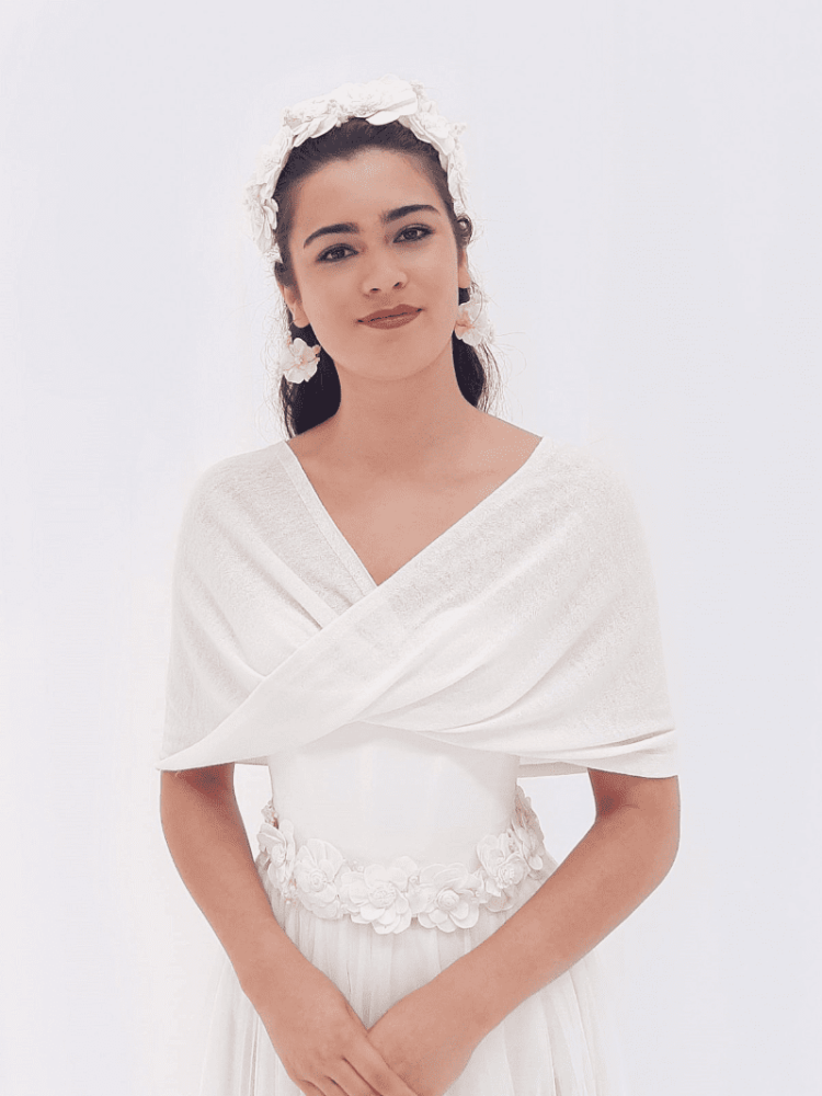 Choose the ivory-coloured softly flowing tube model S187 of the Romantic Collection of Poirier. This stole is braided mid-front. The stole is made out of a composite fabric (16% wool, 20% acrylic, 20% nylon, and 44% polyester). Because of the neutral ivory colour of this stole it can be combined with different types of wedding dresses. This beautiful stole really ties your wedding look together. The size of this stole is 'one size fits all'.